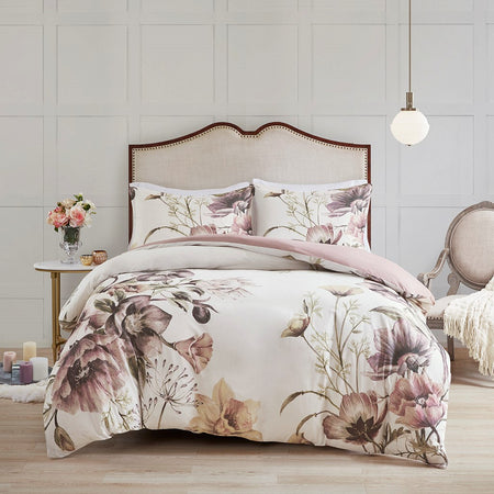 The Madison Park Cassandra 3 Piece Cotton Printed Duvet Cover Set offers a beautiful shabby chic update to your bedroom. The cotton duvet cover and shams feature a large floral print, in soft blush hues, creating a gorgeous look.
