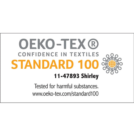 - Oeko-Tex Certified, includes no harmful substances or chemicals (# 11-47893)