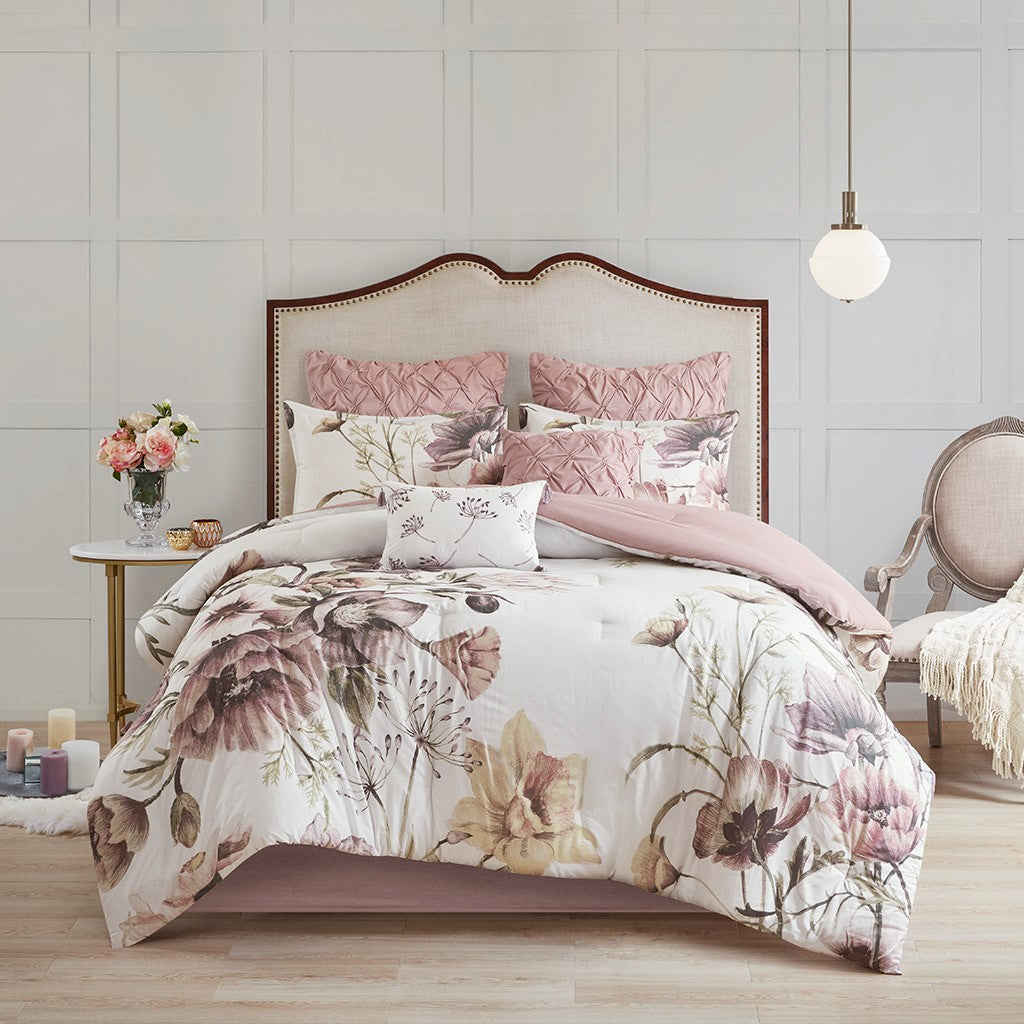 Cassandra 8 Piece Cotton Printed Comforter Set - Blush - King Size