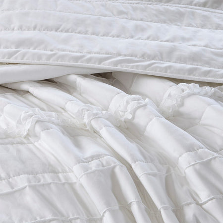 Celeste 4 Piece Reversible Ruffle Quilt Set with Throw Pillow - White - King Size / Cal King Size