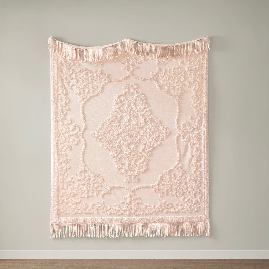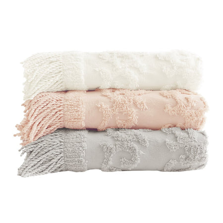 The Madison Park Chloe Cotton Tufted Throw provides a luxurious addition to your home decor. This blush throw flaunts an elegant tufted chenille design with a 4-inch fringe on each end, for a beautiful bohemian look. The ultra-soft 100% cotton construction creates a light natural feel that's perfect for all seasons. Machine washable, this cotton tufted throw is great for layering across your bed or for simply bundling up in to stay warm and cozy.