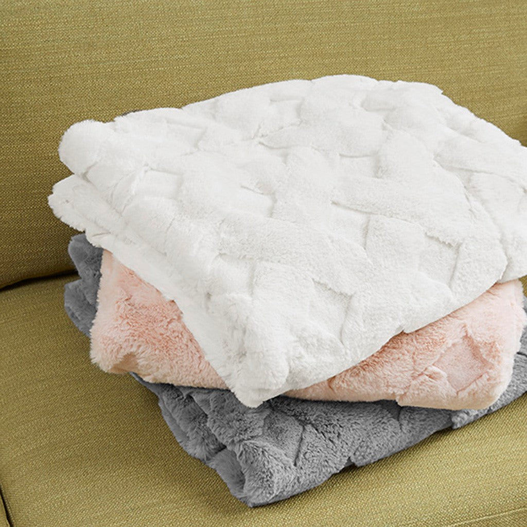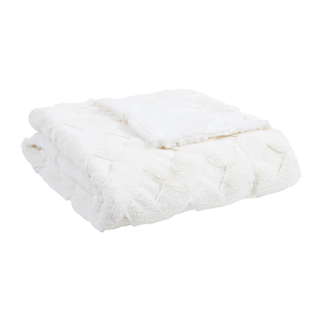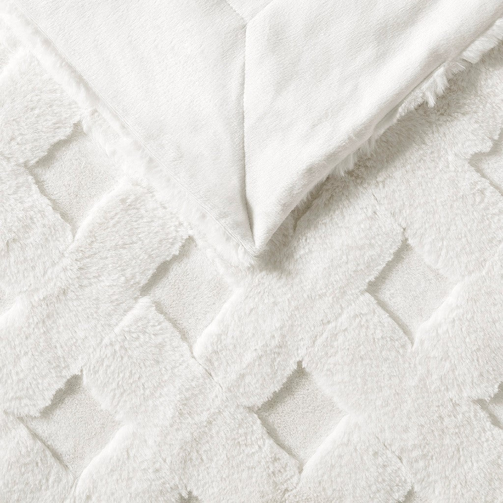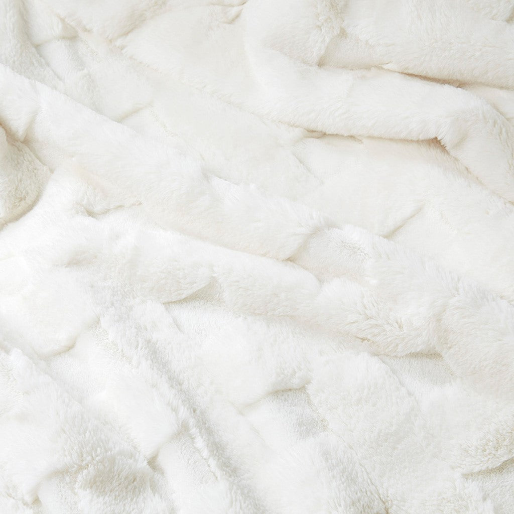 Claire Luxury Basketweave Faux Fur Throw - Ivory - 50x60"