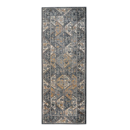 Dakota Tiled Border Area Rug - Blue / Cream - 3x7' Runner
