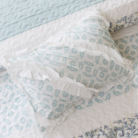 Dawn 6 Piece Cotton Percale Quilt Set with Throw Pillows - Blue - King Size / Cal King Size