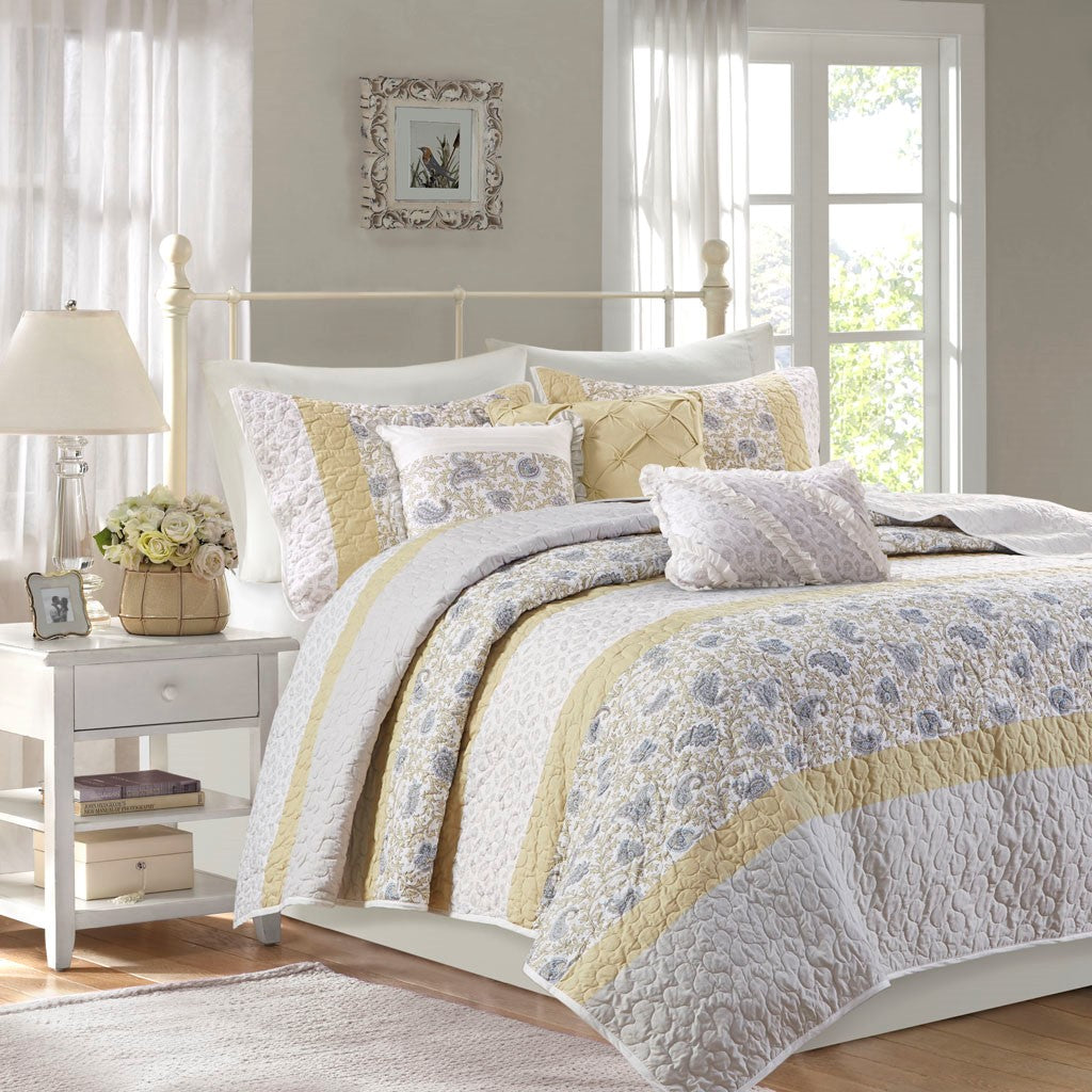 - Cottage and shabby chic 6 piece quilted coverlet set