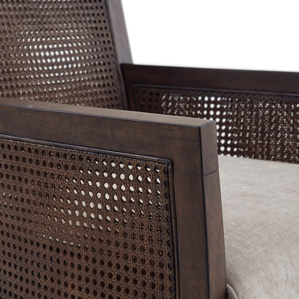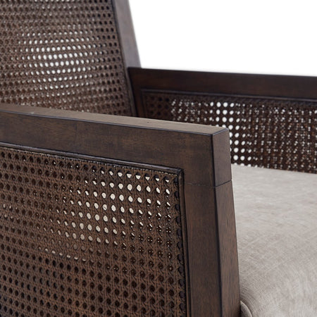 Relax in the comfort and simple style of the Madison Park Diedra Cane Armchair. The unique cane back and sides feature an espresso wood finish, for a charming farmhouse look. The loose seat is upholstered in a tan-hued fabric and uses high-density foam filling, for long-lasting comfort and exceptional support. Add this accent chair to your living room or home office for a chic update to your space. Assembly required, tools included.