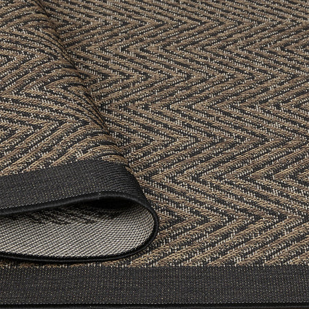 - Global inspired indoor/outdoor area rug flatweave with chevron texture