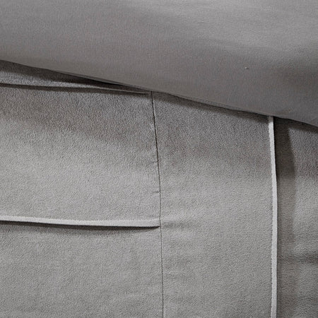 Dune is the perfect comforter collection if you're looking for something that fits your casual lifestyle. This comforter is constructed of high quality microsuede that offers a super soft hand feel. The pintucks give this comforter added design details, while maintaining a casual aesthetic. The grey colorway is accented with black micro-suede for a touch of contrast color. The reverse of the comforter is grey.