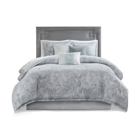 - Modern contemporary 7 piece cotton comforter set in all over soft marble print