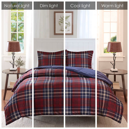 Sleep comfortably with the Madison Park Essentials Bernard 3M Scotchgard Down Alternative Comforter Mini Set. Sporting a cool plaid pattern, this ultra-soft comforter brings a classic casual style to your bedroom decor. The matching shams (1 in Twin/TwinXL) feature 2-inch flanges that add a charming touch to the top of the bed. A 3M Scotchgard Moisture Management Treatment helps wick away moisture to keep you cooler and drier for a comfortable night's sleep. This comforter set is OEKO-TEX certified, meaning it does not contain any harmful substances or chemicals, and uses an antimicrobial treatment that provides built-in freshness protection, reducing the growth of odor causing bacteria to keep fabric lasting longer.