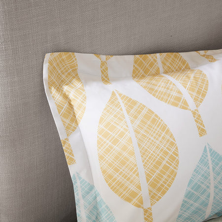 Create a relaxing vibe in your bedroom with the Madison Park Essentials Central Park Comforter Set with Cotton Sheet Set. This bedding set is OEKO-TEX certified, meaning it does not contain any harmful substances or chemicals, ensuring quality comfort and wellness. The comforter features a printed yellow and aqua leaf design in soft and pleasant colors against a white backdrop, for a charming botanical look.