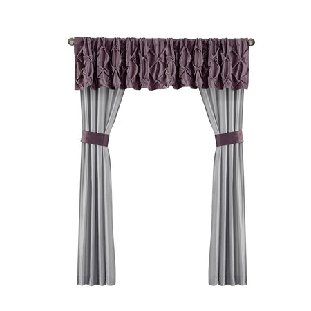 - Each curtain panel is 42x84 inches with coordinating tieback and valance