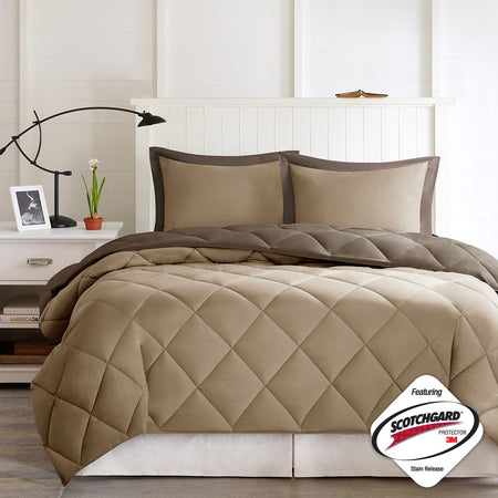 Larkspur 3M Scotchgard Diamond Quilting Reversible Down Alternative Comforter Set - Brown / Sand - Twin Size / Twin XL Size