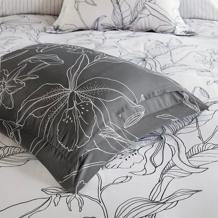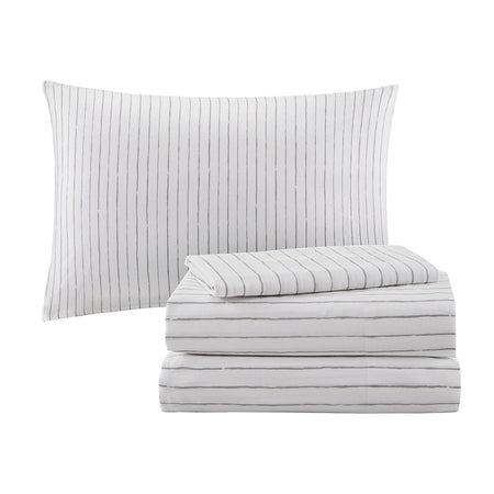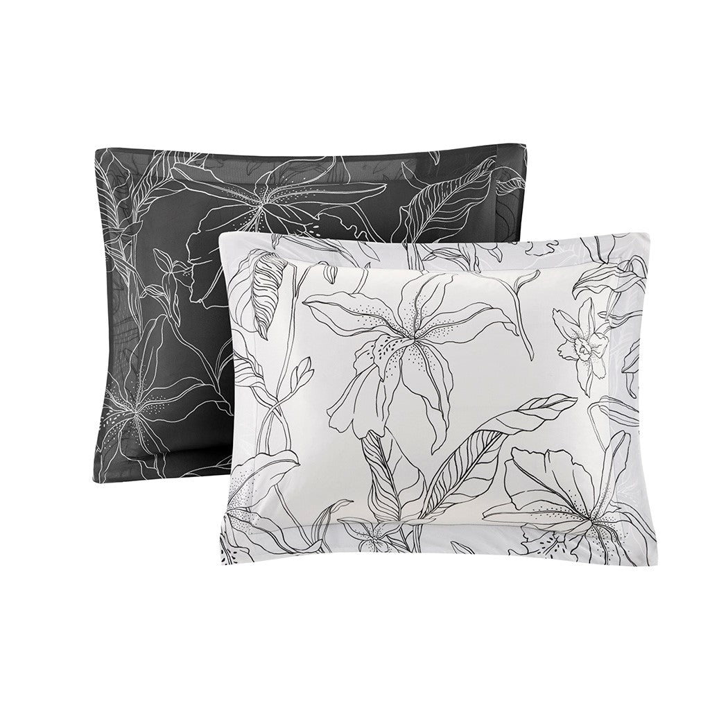 Lilia 9 Piece Reversible Comforter Set with Cotton Bed Sheets - White / Charcoal - King Size