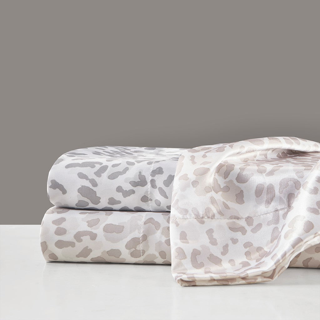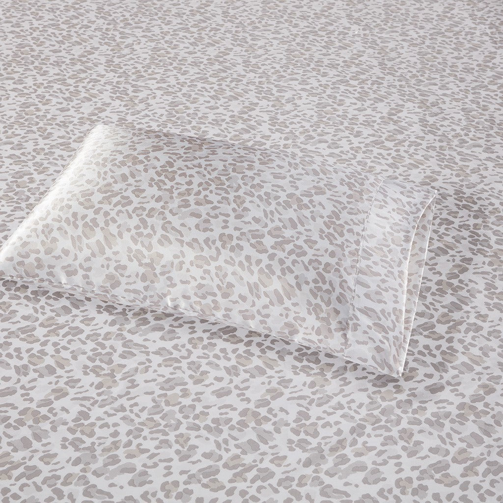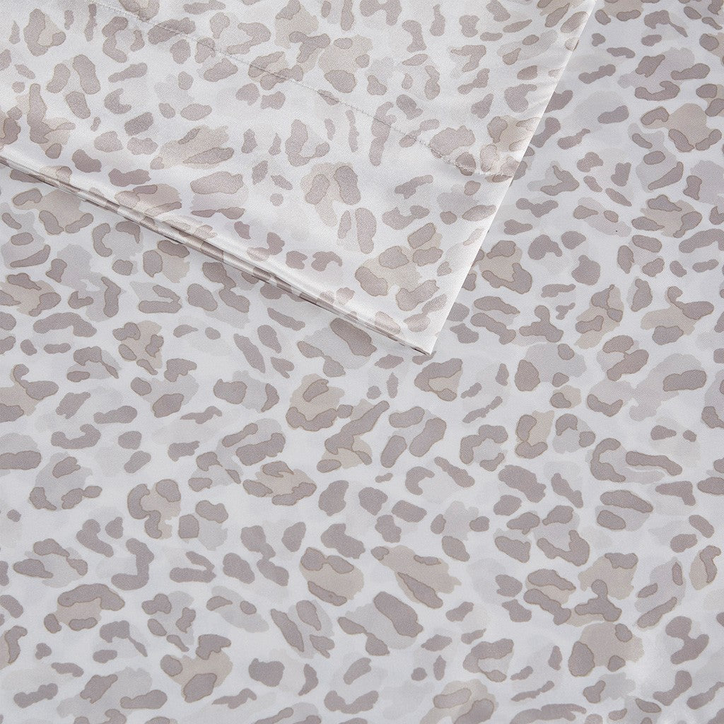 Printed Satin Sheet Set - Taupe Leopard - Full Size