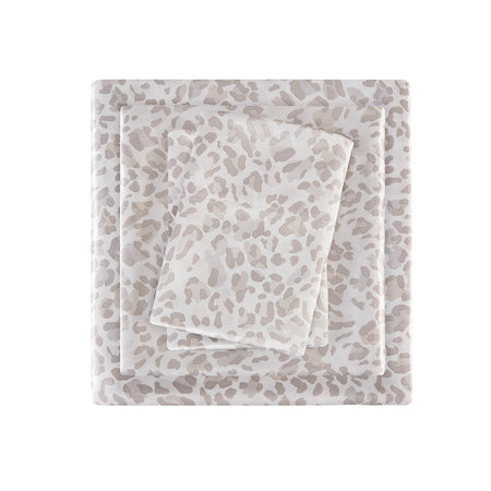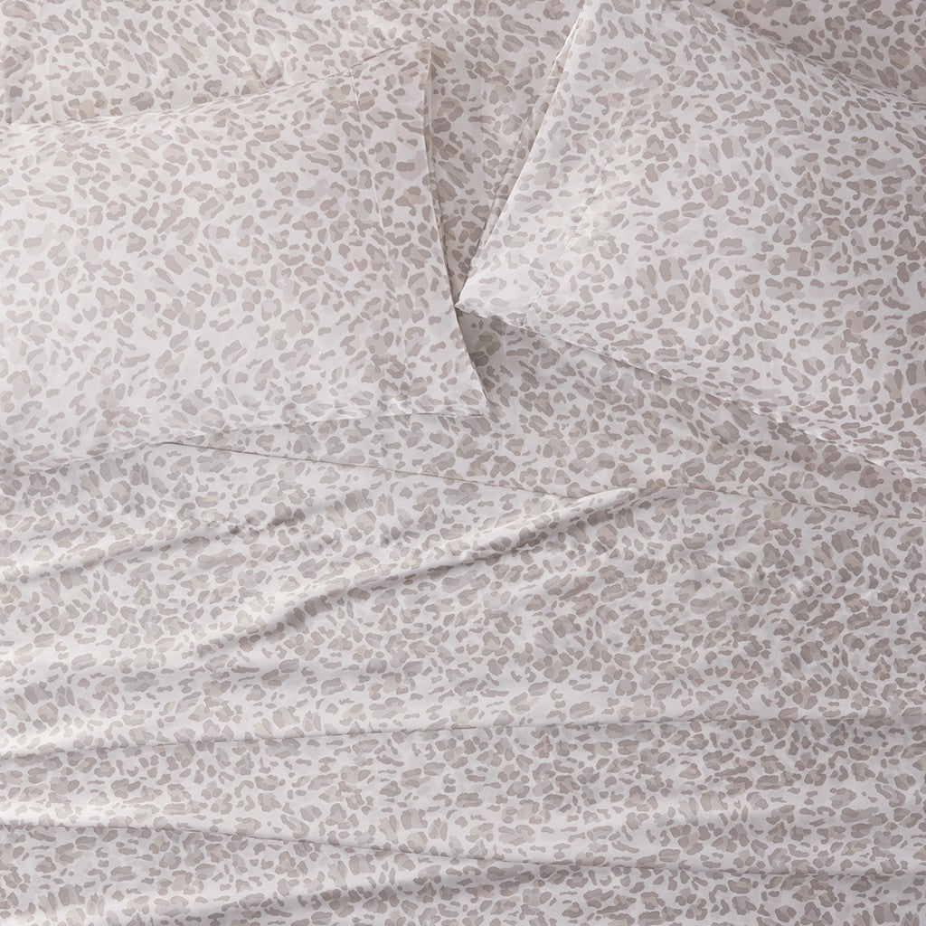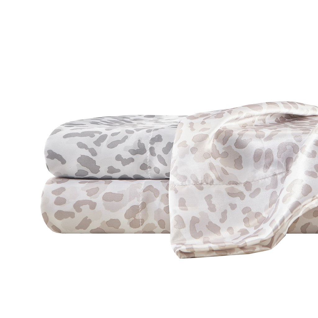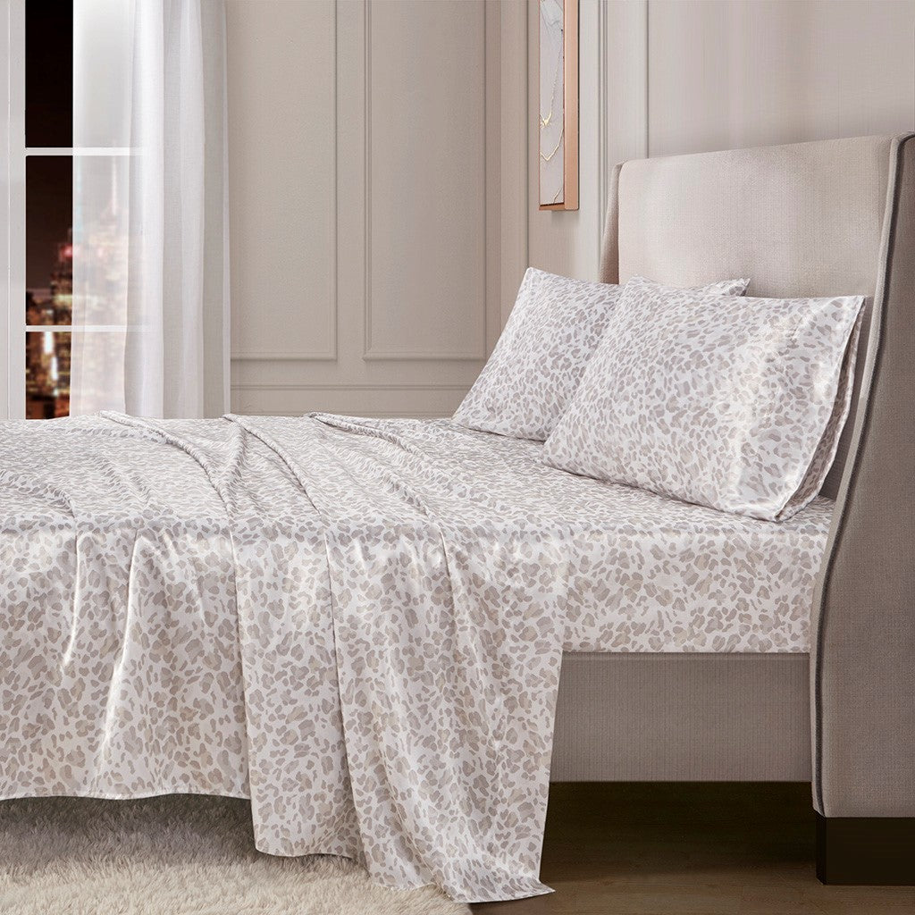 Printed Satin Sheet Set - Taupe Leopard - Full Size