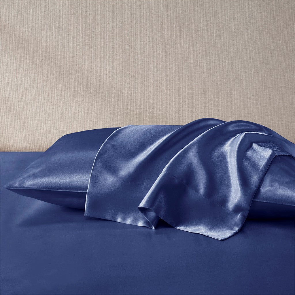 Satin Luxury 2 PC Pillowcases - Navy - King Size