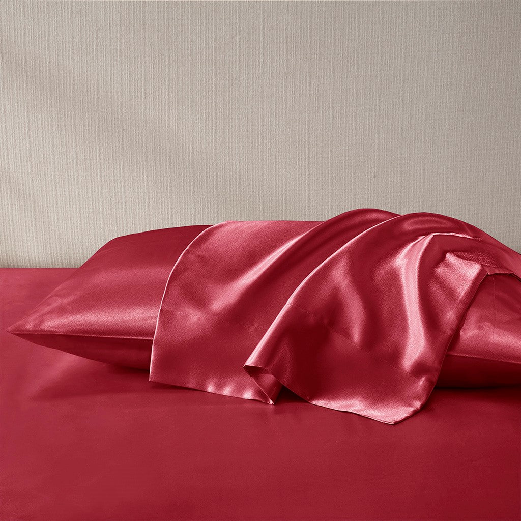 Satin Luxury 2 PC Pillowcases - Red - King Size