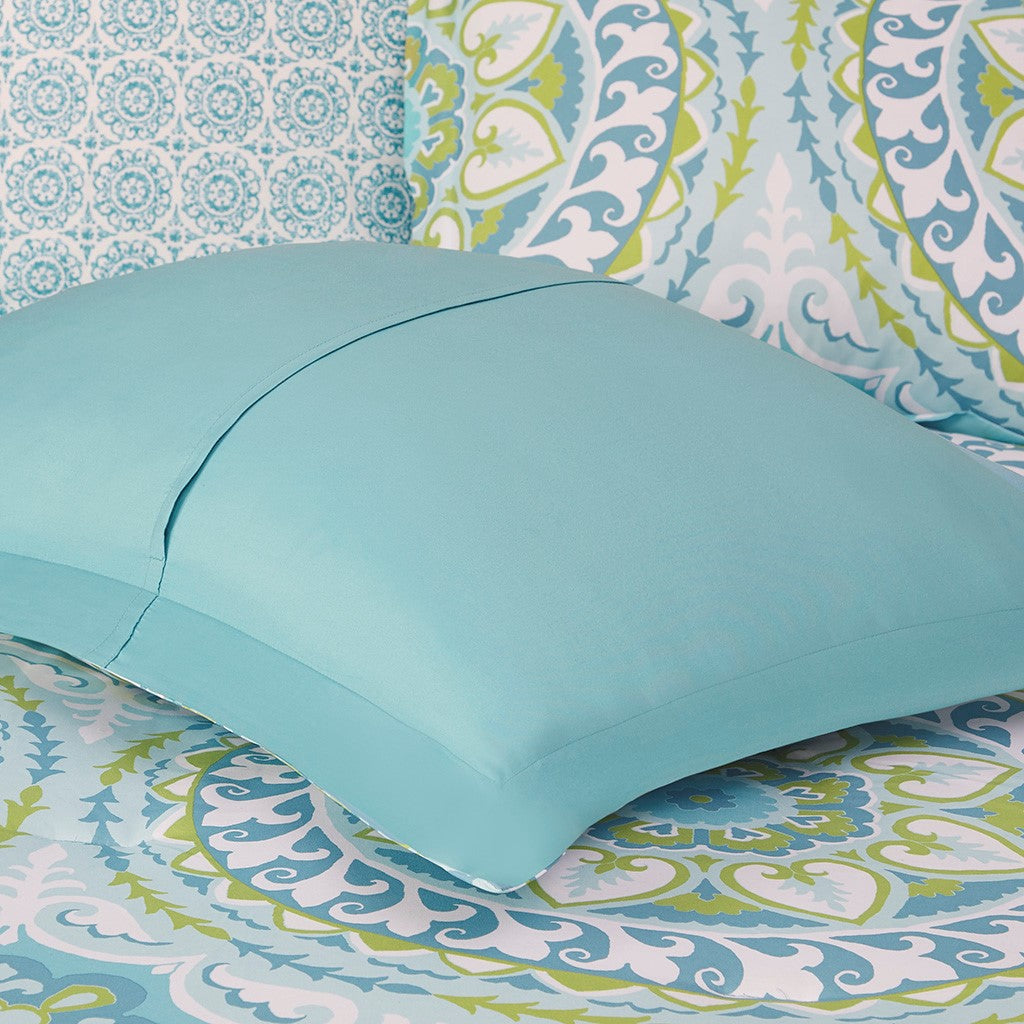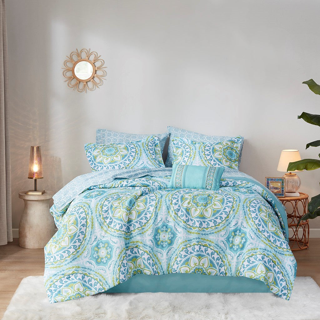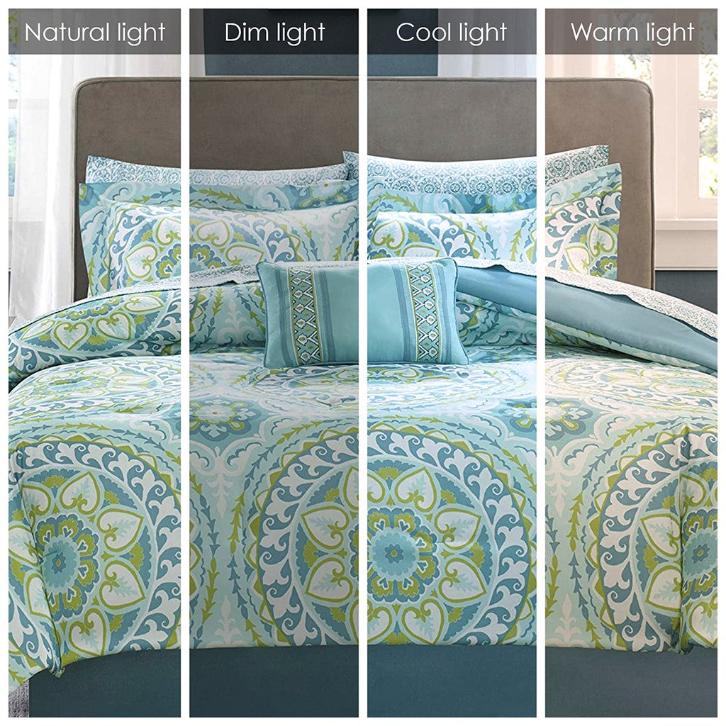 Serenity 9 Piece Comforter Set with Cotton Bed Sheets - Aqua - King Size