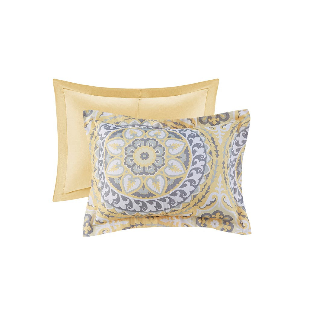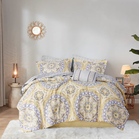 Serenity 9 Piece Comforter Set with Cotton Bed Sheets - Yellow - Cal King Size