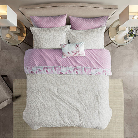 - Set includes comforter, 2 shams (1 in Twin), flat sheet, fitted sheet, 2 pillowcases (1 in Twin), 1 decorative pillow