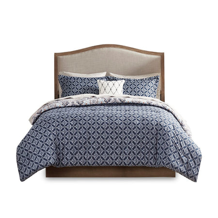 Titus Reversible 8 Piece Comforter Set with Bed Sheets - Navy - Full Size