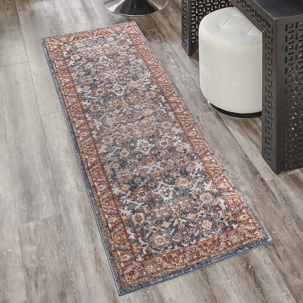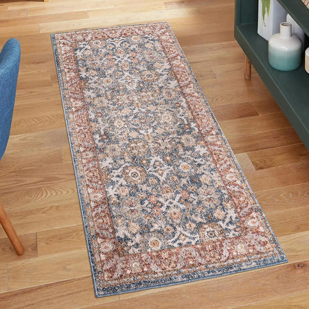 Faith Persian Bordered Traditional Woven Area Rug - Blue / Red - 3x8' Runner
