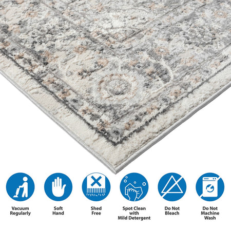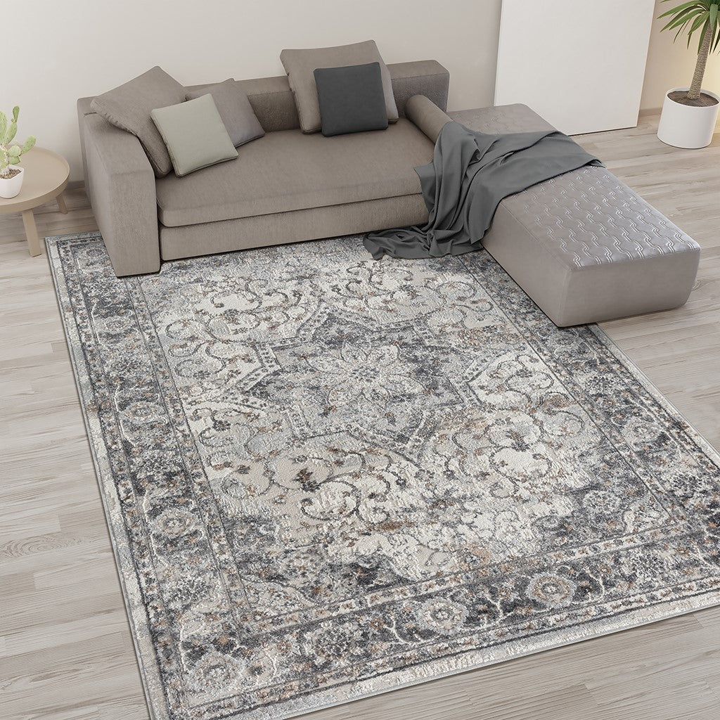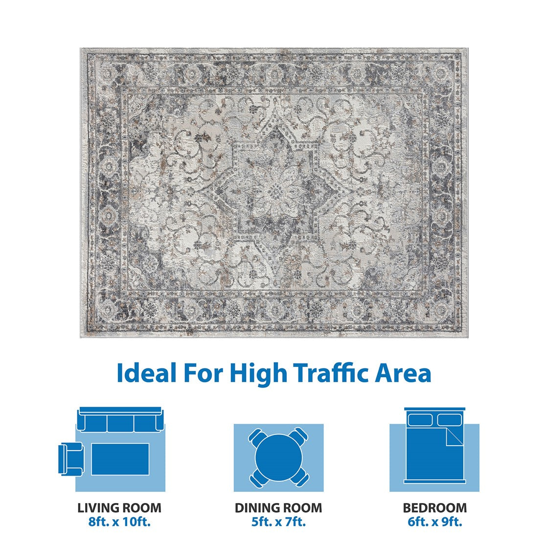 The Madison Park Frances Medallion Woven Area Rug offers a beautiful traditional update to your home decor. Made in Turkey, this machine woven area rug features a medallion pattern in shades of grey to create a globally inspired look. The soft, medium pile makes the woven rug well suited for high traffic areas, while the transparent sprayed latex reverse helps keep the rug from sliding. A rug pad is still highly recommended to keep the rug in place. Stain and fade resistant, this woven area rug is OEKO-TEX certified, meaning it does not contain any harmful substances or chemicals to ensure quality comfort and wellness. Rug is available in multiple sizes, which makes it perfect for your living room, family room, or entryways. Clean with a vacuum or by spot cleaning.