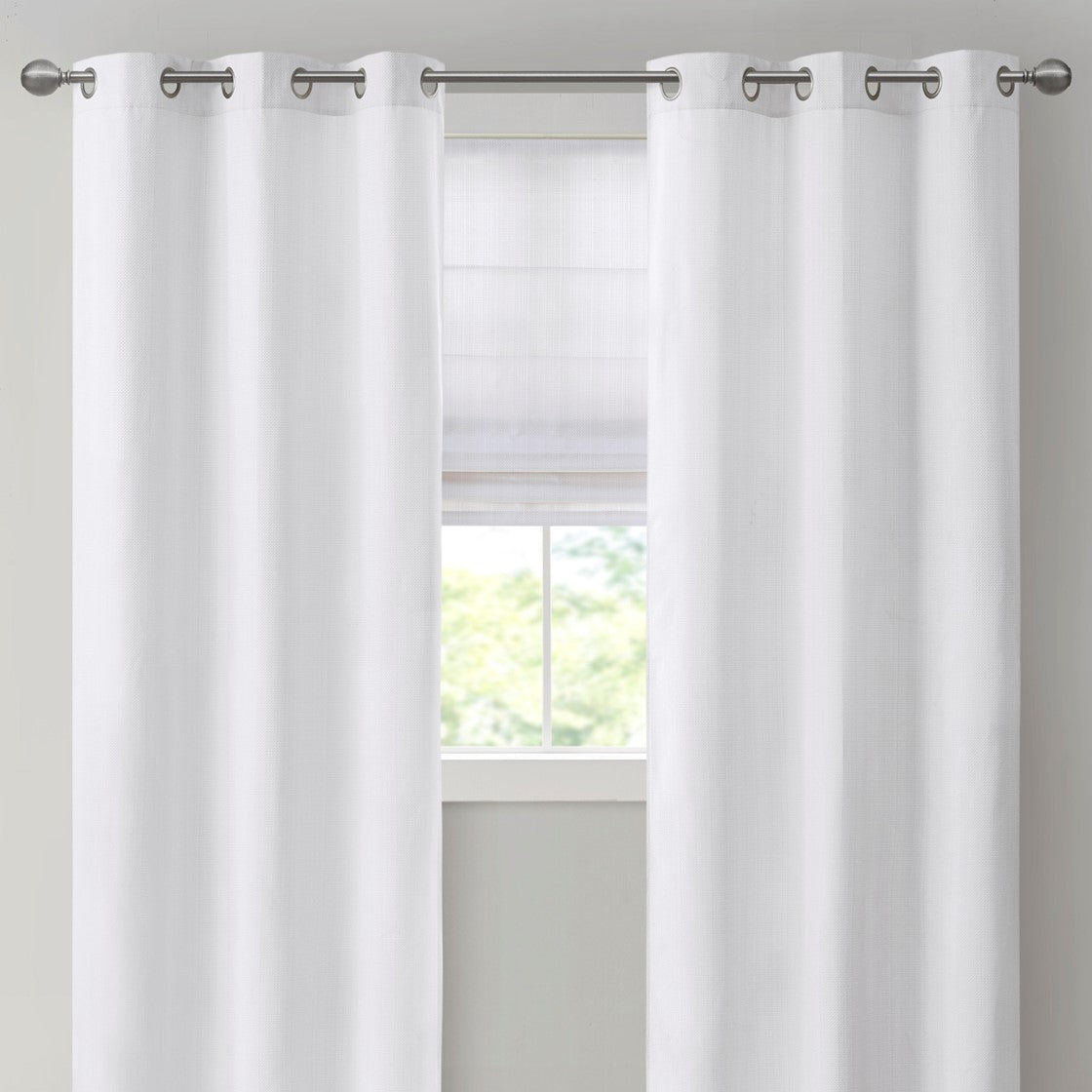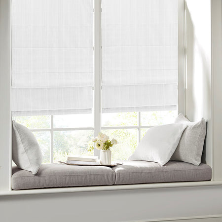 The Madison Park Galen Basket Weave Room Darkening Roman Shade offers a simple and convenient update to your home decor. This white roman shade features a basket weave texture base fabric that creates a natural look and feel. A thermal foambacking on the reverse provides energy efficiency and enhanced privacy. The cordless retraction mechanism makes it easy to open and close the window shade throughout the day, while the detachable fabric face allows for easier assembly and cleaning by lightly shaking or dusting. Though detachable from the hook and loop fastener, the top face fabric is NOT fully removable. Ready to install right out of the packaging, this roman shade can be hung inside or above the window pane allowing you to find the perfect fit for your home decor. Each shade is also OEKO-TEX certified, meaning it does not contain any harmful substances or chemicals to ensure quality comfort and wellness. Shade measures 64-inches in length and comes in 5 width options to suit multiple standard window sizes; each roman shade is sold as a single and comes with a printed instructional guide as well as an instructional video available on site. Assembly is required.