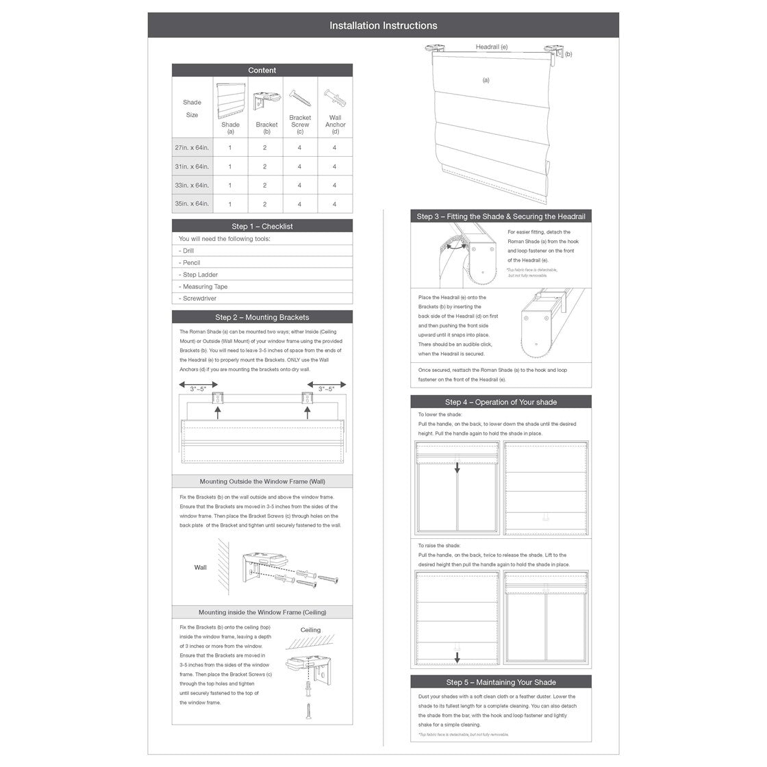 - The Roman shade is true to size with no deductions. Assembly is required with hardwares included