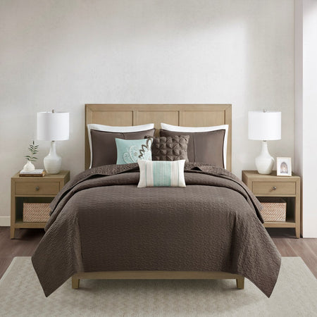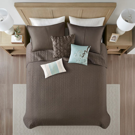Geneva 6 Piece Printed Quilt Set with Throw Pillows - Brown - King Size / Cal King Size