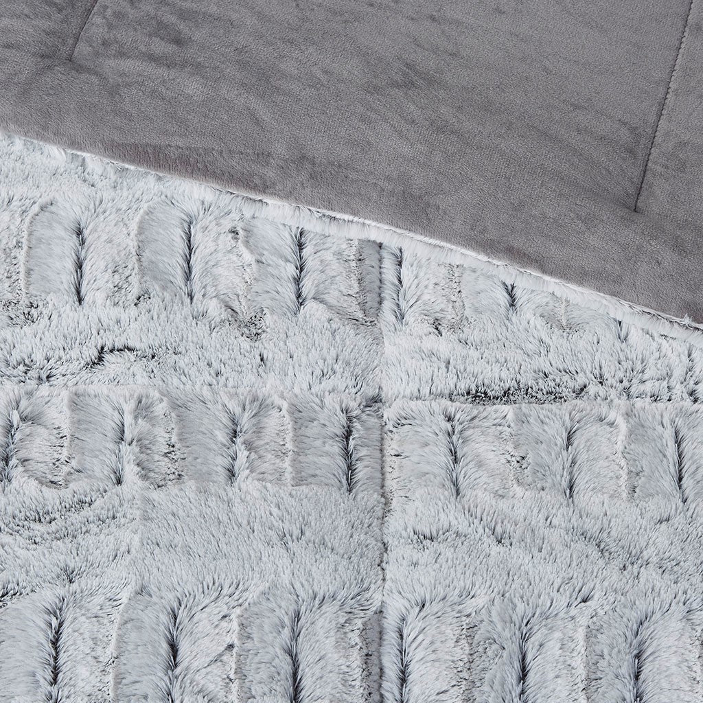Gia Back Print Long Fur Comforter Mini Set - Grey - Full Size / Queen Size