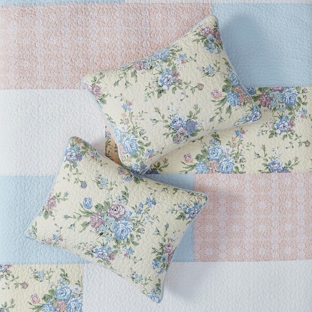 - Soft cotton printed 3 piece reversible coverlet mini set for cottage or farmhouse style bedroom