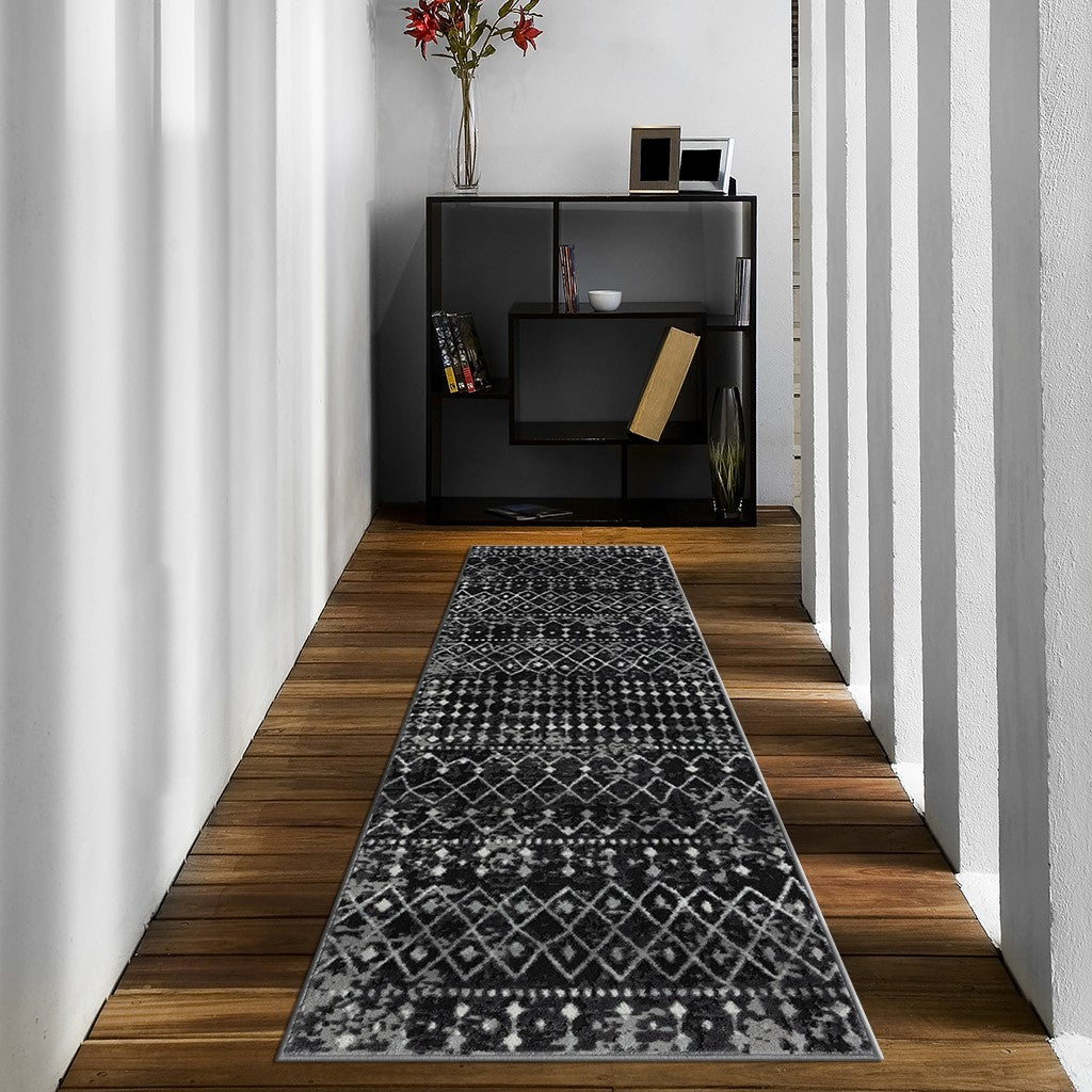 Hannah Moroccan Global Woven Area Rug - Charcoal - 3x8' Runner