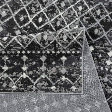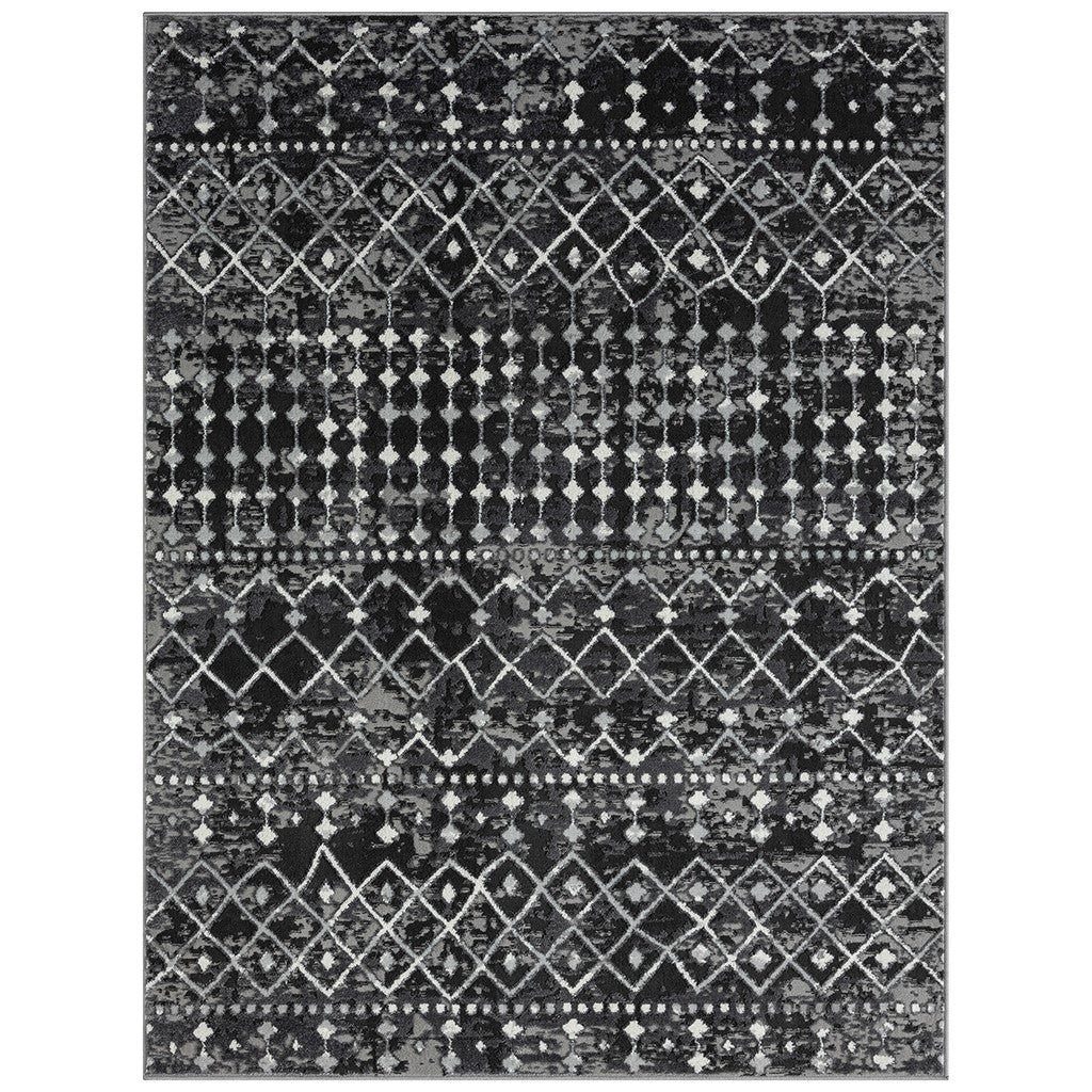 Add a fashionable style to your living space with the Madison Park Hannah Moroccan Area Rug. This machine woven, cut area rug features a charcoal and grey globally inspired print creating a rich and beautiful, look and feel. The medium soft pile provides simple comfort, as a transparent sprayed latex reverse helps to prevent rug from sliding making it well suited to high-traffic areas in your home. Easy to clean with a vacuum or spot cleaning, while also stain and fade resistant - this area rug brings a splash of color and a textural element to any home decor. This woven area rug is OEKO-TEX certified, meaning it does not contain any harmful substances or chemicals to ensure quality comfort and wellness. Available in multiple colors and sizes, this rug is perfect for any living room, family room, and or other room decor. A rug pad is highly recommended to keep the rug more secured in place; Rug pad sold separately.