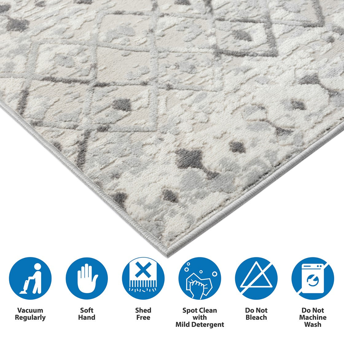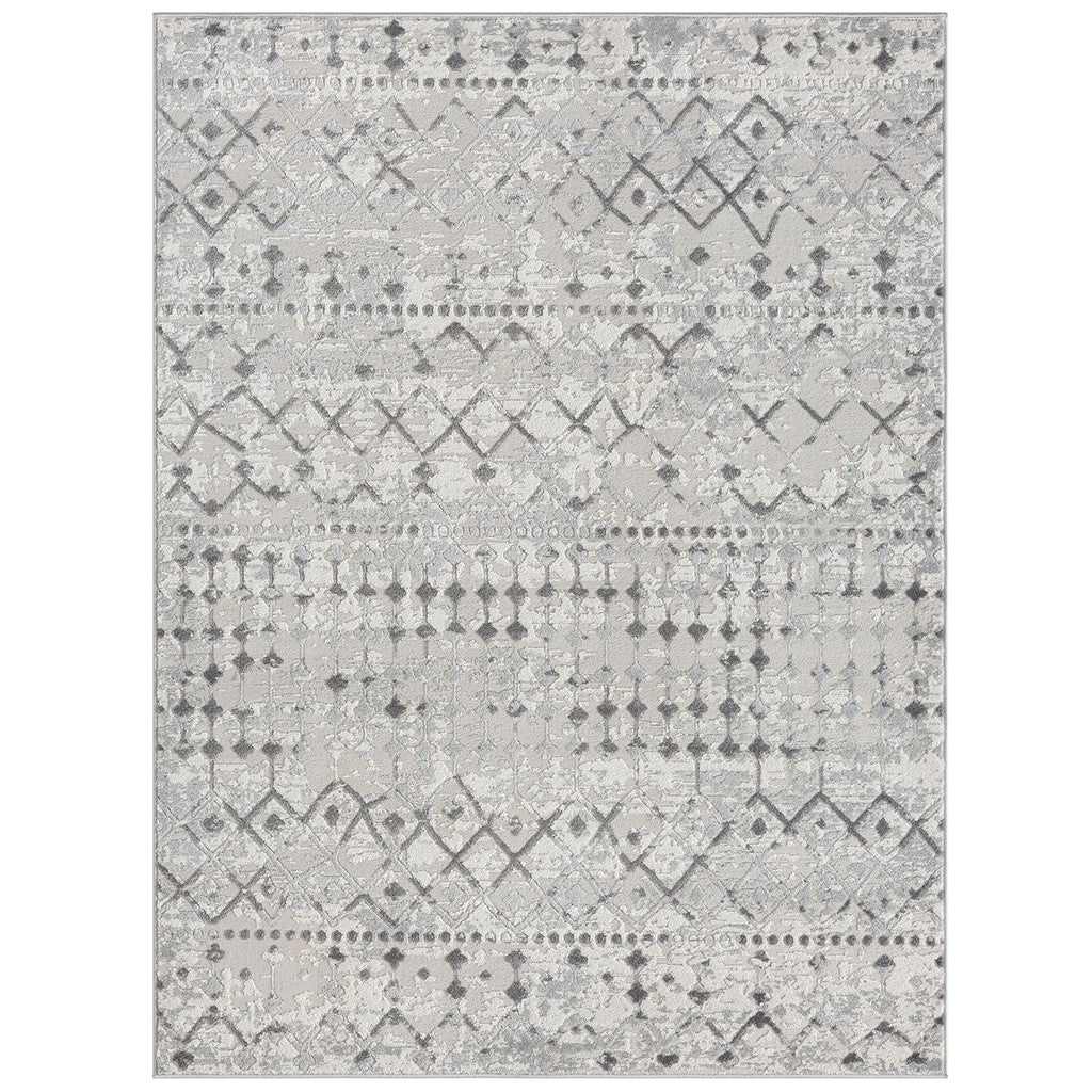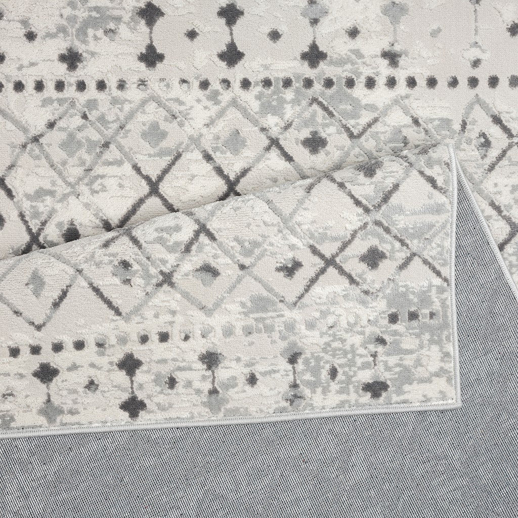 Add a fashionable style to your living space with the Madison Park Hannah Moroccan Area Rug. This machine woven, cut area rug features a light grey and cream globally inspired print creating a rich and beautiful, look and feel. The medium soft pile provides simple comfort, as a transparent sprayed latex reverse helps to prevent rug from sliding making it well suited to high-traffic areas in your home. Easy to clean with a vacuum or spot cleaning, while also stain and fade resistant - this area rug brings a splash of color and a textural element to any home decor. This woven area rug is OEKO-TEX certified, meaning it does not contain any harmful substances or chemicals to ensure quality comfort and wellness. Available in multiple colors and sizes, this rug is perfect for any living room, family room, and or other room decor. A rug pad is highly recommended to keep the rug more secured in place; Rug pad sold separately.