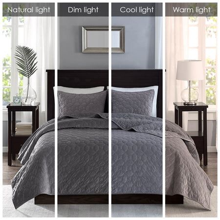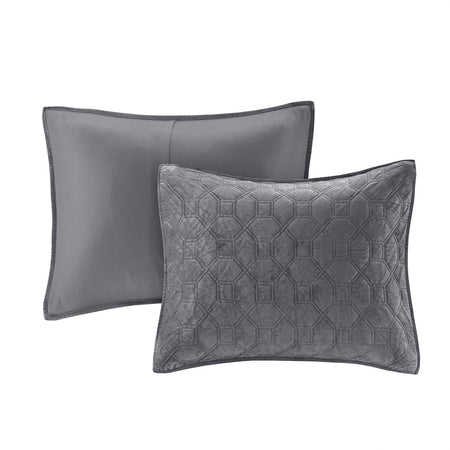 Harper 3 Piece Velvet Quilt Set - Grey - Full Size / Queen Size