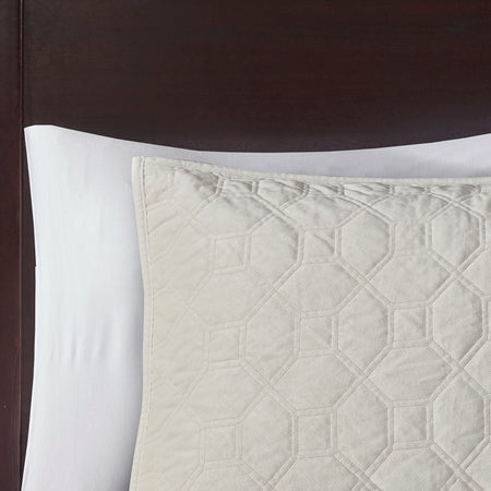 The Madison Park Harper Velvet 3 Piece Coverlet Set offers a casual and comfortable update to your bedroom. The polyester velvet coverlet features a soft texture with a geometric quilted design, for a rich look and feel. Matching shams pair beautifully with the coverlet to complete the quilt set. Providing a charming layering piece to your bed, this coverlet has an antimicrobial treatment that helps reduce bacteria buildup and odors, keeping the fabric fresh longer.