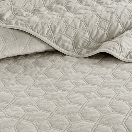 - Elegant and soft velvet coverlet set in geometric quilting technique