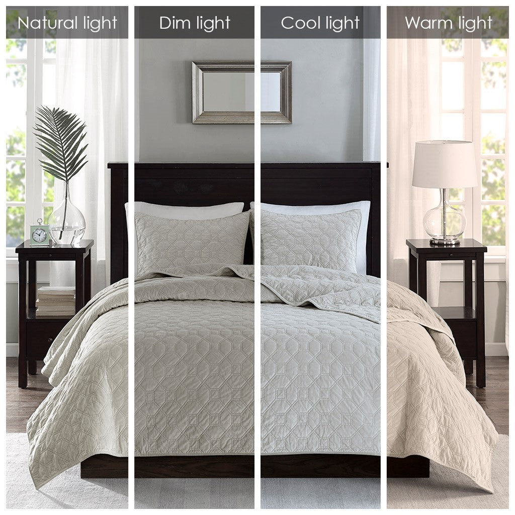 The Madison Park Harper Velvet 3 Piece Coverlet Set offers a casual and comfortable update to your bedroom. The polyester velvet coverlet features a soft texture with a geometric quilted design, for a rich look and feel. Matching shams pair beautifully with the coverlet to complete the quilt set. Providing a charming layering piece to your bed, this coverlet has an antimicrobial treatment that helps reduce bacteria buildup and odors, keeping the fabric fresh longer.