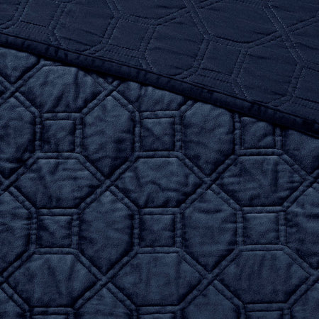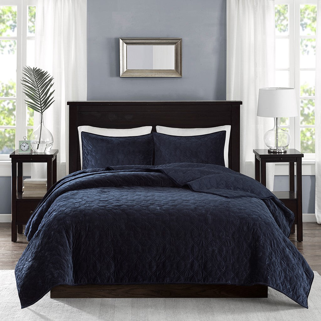 Harper 3 Piece Velvet Quilt Set - Navy - Full Size / Queen Size