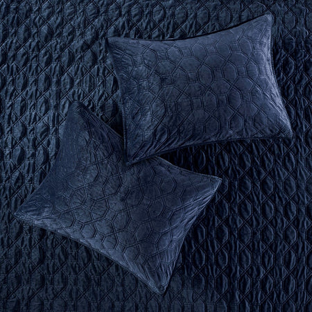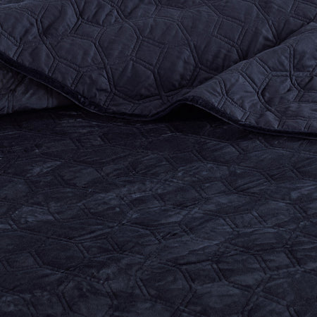 Harper 3 Piece Velvet Quilt Set - Navy - King Size / Cal King Size