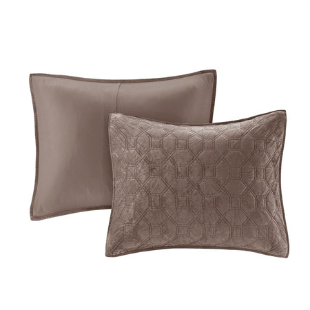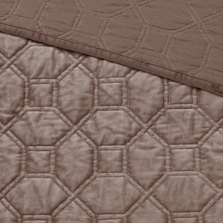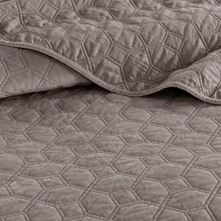Harper 3 Piece Velvet Quilt Set - Taupe - Full Size / Queen Size