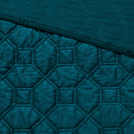 Harper 3 Piece Velvet Quilt Set - Teal - Full Size / Queen Size