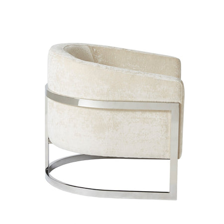 The Madison Park Haven Accent Chair makes a statement with its trend-setting style. This barrel chair is upholstered in a polyester fabric with a soft velvet-like touch that adds a rich look and feel. The steel frame is electroplated in a silver finish, for a modern flair, while the high density foam filling offers superior comfort. Fabulously chic from any angle, this accent chair makes an eye-catching addition to your living room or home office. No assembly required.