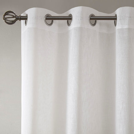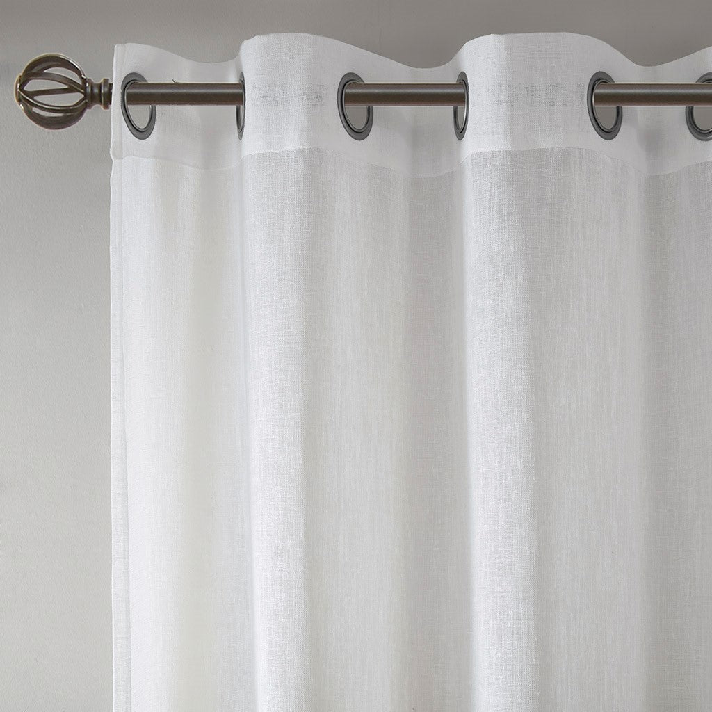 Modern stripes at its best, our Madison Park Hayden Woven Window Panel is the perfect addition for a relaxed space. Neutral tonal stripes are printed at the bottom for a unique border design, while the faux linen sheer fabric provides an organic texture for a cool and casual update. Silver grommet top makes this panel easy to hang, open, and close throughout the day; fits up to 1.25" diameter rod.