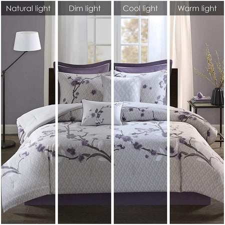 Holly 8 Piece Cotton Comforter Set - Purple - King Size