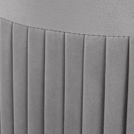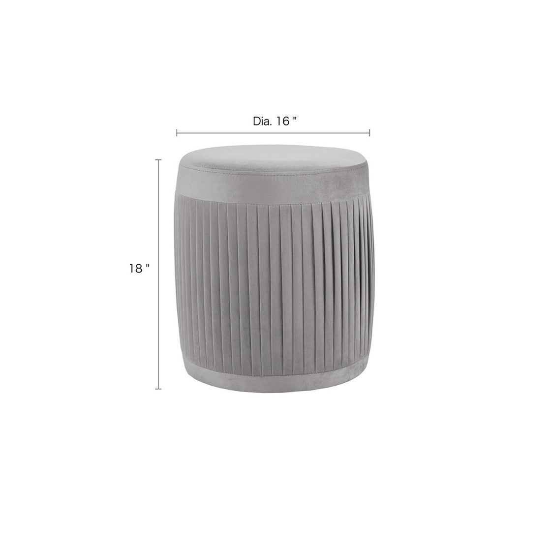 Add that perfect touch of elegance and sophistication to your home with the Madison Park Holt Accent Ottoman. This round ottoman is upholstered in rich velvet fabric with pleated fabric wrapped around the side, for a chic transitional look. Place this upholstered ottoman in your living room or bedroom to give your space a fashionable update. No assembly required.