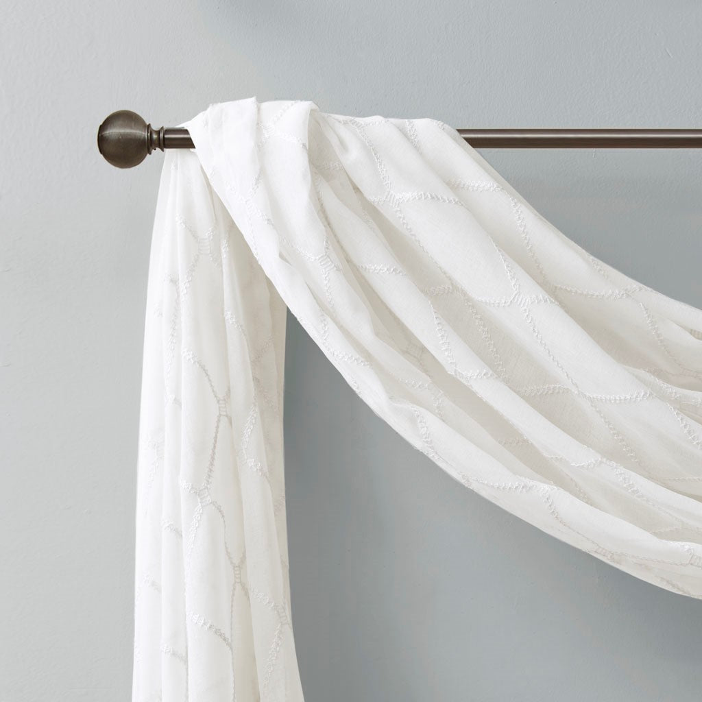 Irina Diamond Sheer Embroidered Window Scarf - White - 50x144"