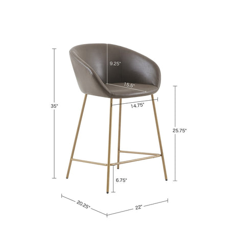 Elevate the look of your kitchen or dining room with the Madison Park Isadora Counter Stool. The low seat and back are upholstered in brown polyurethane leather and the slender metal base flaunts a gold finish, for a bold modern look. Showcasing a simple and clean design, this counter stool brings a sophisticated touch to your dining decor. Leg assembly is required and a tool is included.
